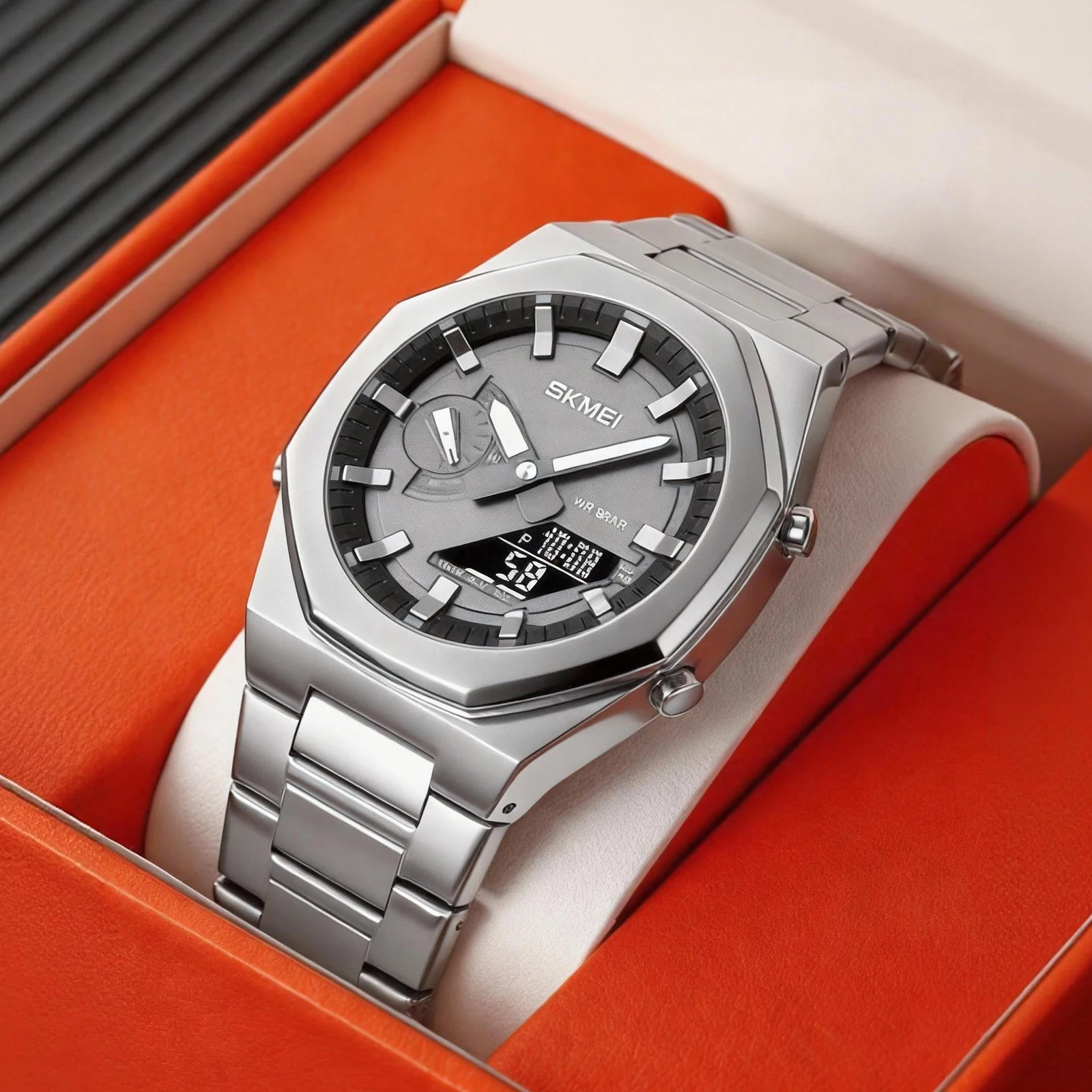SKMEI 1816 watch combines a robust sports aesthetic with practical, everyday functionality. Its analog-digital display provides clear access to multiple timekeeping modes, while the durable construction ensures reliability for active use. This timepiece is designed for those who require both style and utility from their wristwatch.